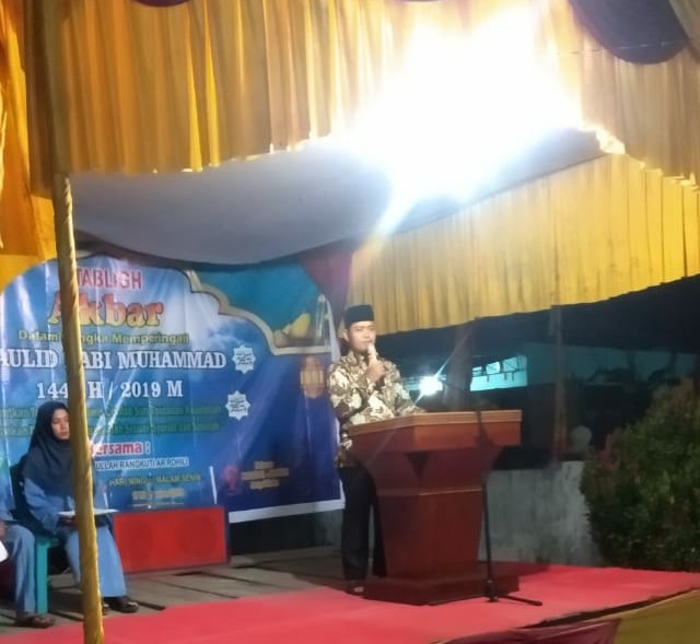 ROKAN HILIR – Pemerintah desa (Pemdes) Kepenghuluan Sungai Kubu, Kecamatan Kubu, Kabupaten Rokan Hilir, Riau menggelar peringatan Maulid Nabi Muhammad SAW 1441 Hijriah, Ahad (17/11/2019) di halaman Masjid Al-Ikhwan Sungai Kubu.