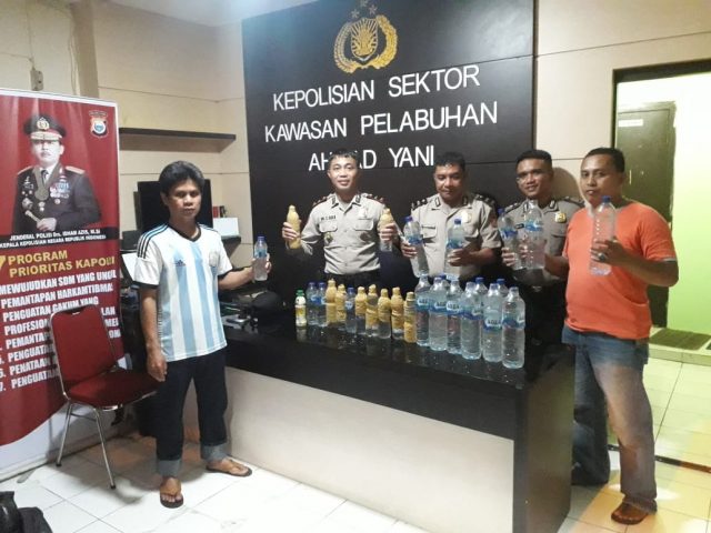Miras jenis cap tikus tanpa pemilik sebanyak 28 botol aqua itu kemudian dibawa ke Mako Polsek KP3 Ahmad Yani untuk diamankan.