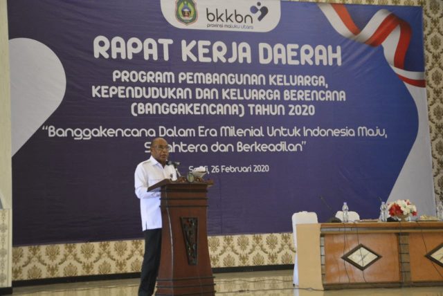 Sementara, Kepala Perwakilan BKKBN Malut, Nerius Auparai, dalam laporannya mengatakan, tujuan dari Rakerda 2020 ini untuk mengevaluasi program pembangunan keluarga, kependudukan dan keluarga berencana tahun 2019. Serta untuk menyusun rencana aksi tahun 2020. “Rakerda ini sebagai wadah untuk mensinergikan program Banggakenca dan lintas sektor lainnya serta memantapkan jejaring kemitraan.