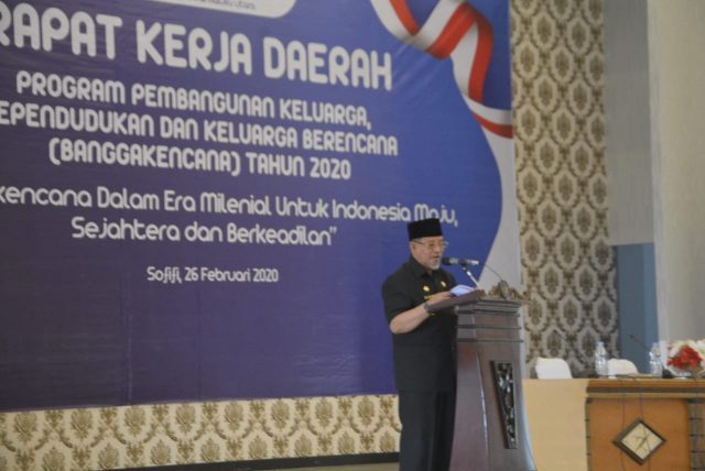 SOFIFI – Gubernur Maluku Utara KH. Abdul Gani Kasuba menghadiri dan sekaligus membuka secara resmi kegiatan Rapat Kerja Daerah (Rakerda) yang dilaksanakan oleh Perwakilan Badan Kependudukan dan Keluarga Berencana (BKKBN) Malut pada Rabu (26/2/20) bertempat di Aula Nuku Kantor Gubernur, Gosale Puncak, Sofifi.