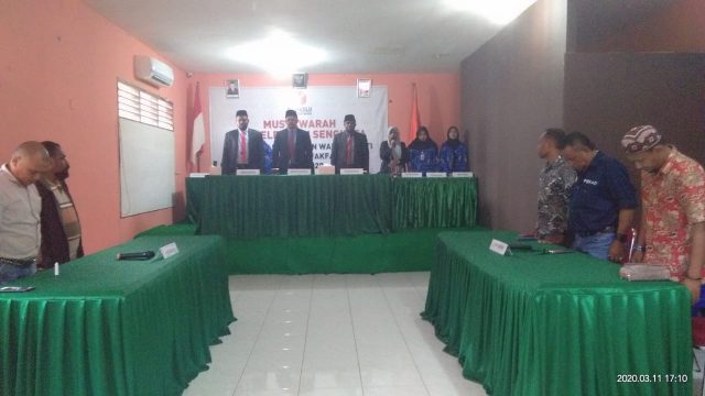 FAK FAK – Badan pengawas pemilihan umum (Bawaslu) Kabupaten Fak-Fak, Provinsi Papua Barat melaksanakan Sidang musyawarah penyelesaian Sengketa Bakal calon (Balon) Bupati dan wakil Bupati Cyrilius Adopak SE, MM dan Peggi Patrisia Patipi SE, Rabu, (11/3/2020).