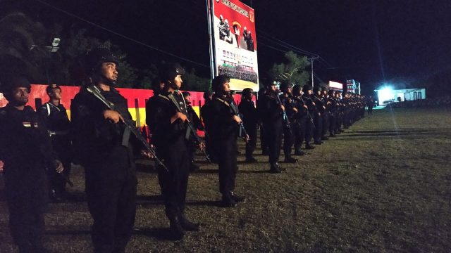 SOFIFI – Personil Bataliyon A Pelopor Sat Brimob Maluku Utara (Malut) melaksanakan apel Konsulidasi Pengecekan Personil yang dipimpin langsung oleh Wakil Komandan Bataliyon A Pelopor, AKP Siradjudin S.H yang bertempat di lapangan apel Bataliyon A Por Kelurahan Guraping Kecamatan Oba Utara, Kota Tidore Kepulauan, pada Pukul 21:00 s/d 21:23 Wit, Minggu (15/3/2020).