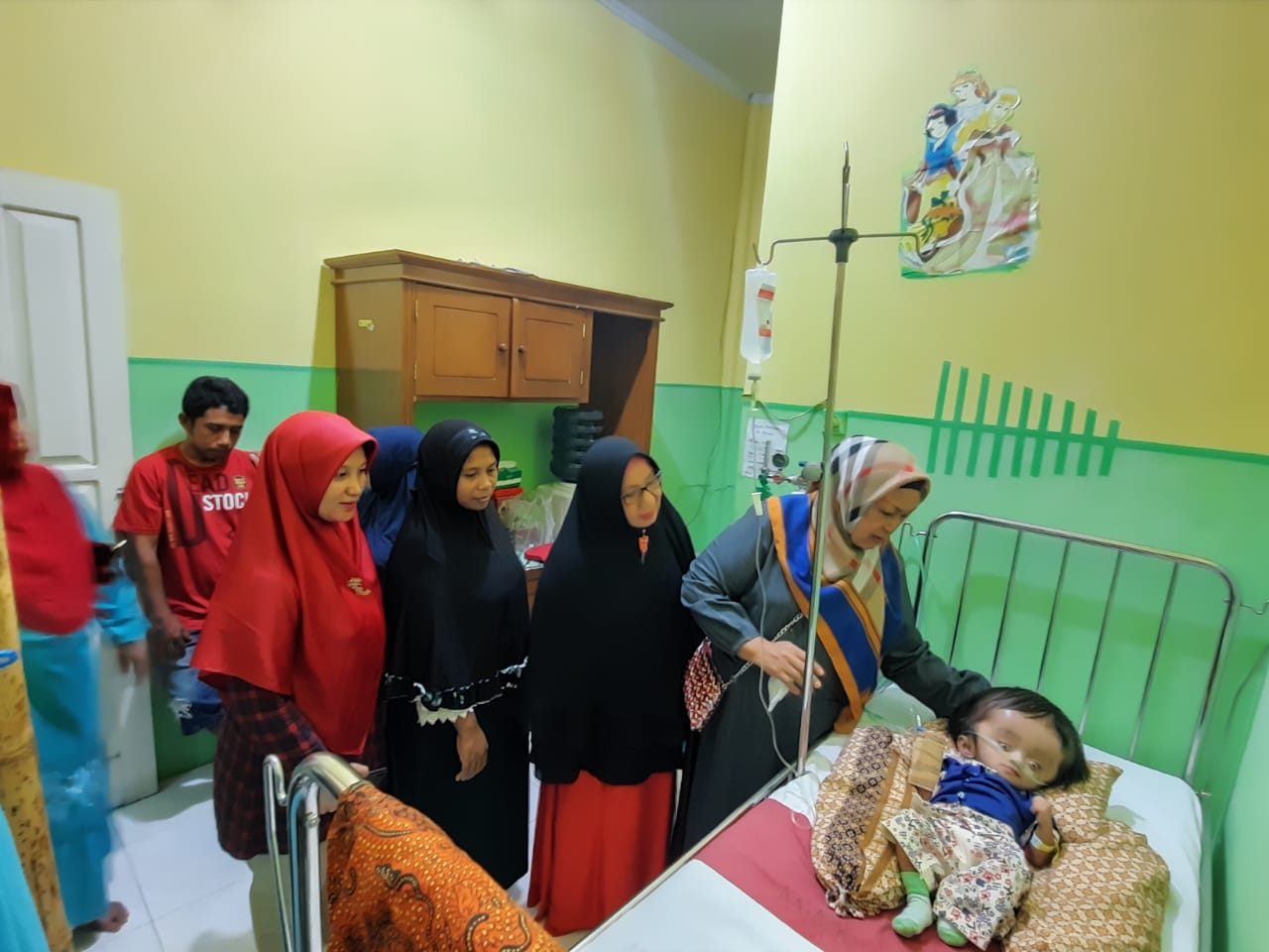 Dipimpin Ketua DWP Kota Tidore Kepulauan Hj. Nursaidah Asrul Sani bersama anggota mendatangi sekaligus menyerahkan bantuan kepada Rifka Abdullah yang dirawat di Rumah Sakit Umum Kota Tdore Kepulauan, Sabtu (14/3) malam.