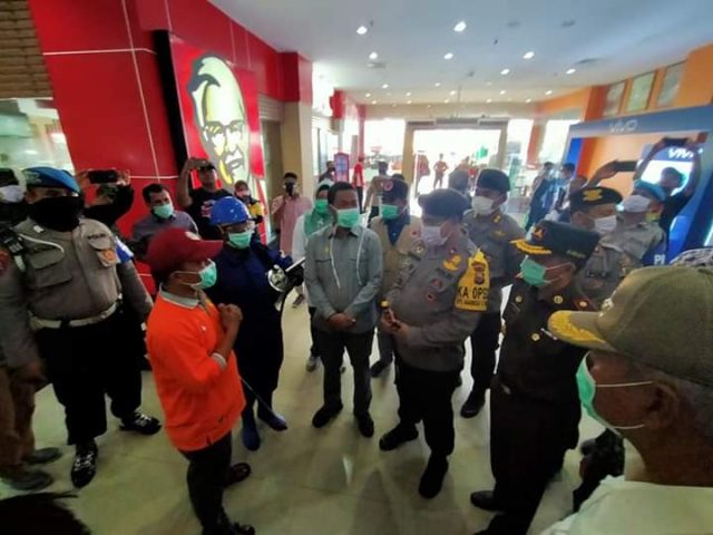 Tak menunggu lama, selepas dari pasar, kemudian melanjutkan pengecekan ke Jati Land Mall yang langsung diterima oleh Manajemen Mall, Kepala Dinas Kesehatan Kota Ternate, serta Kepala BPBD Kota Ternate yang sementara sedang melakukan penyemprotan cairan Disinfektan di titik publik biasa berkumpul.