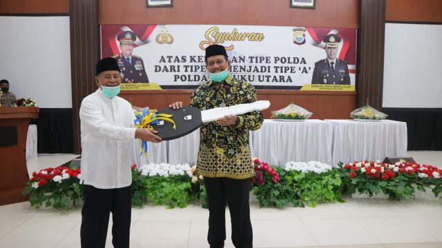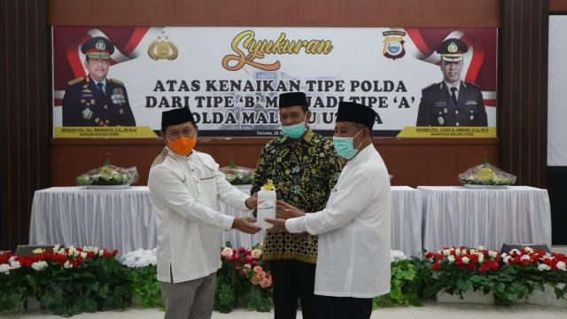 “Ditengah pandemi Covid-19. Allah SWT juga memberikan rahmat kepada Malut berupa peningkatan status tipe Polda. Ini patut kita syukuri bersama karena menjadi kebaggaan Maluku Utara,” ungkapnya.