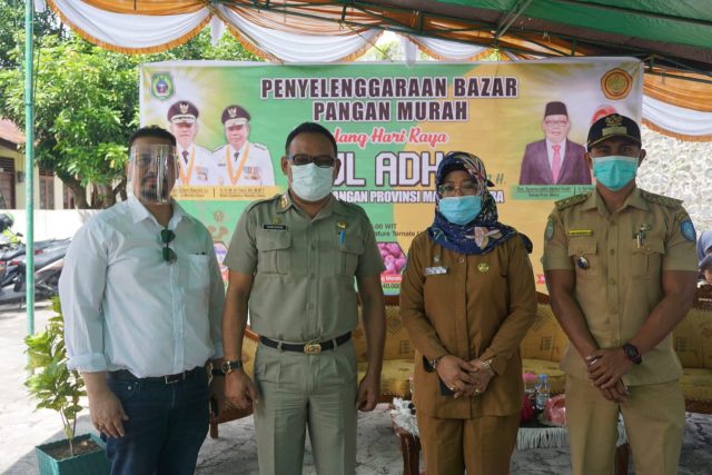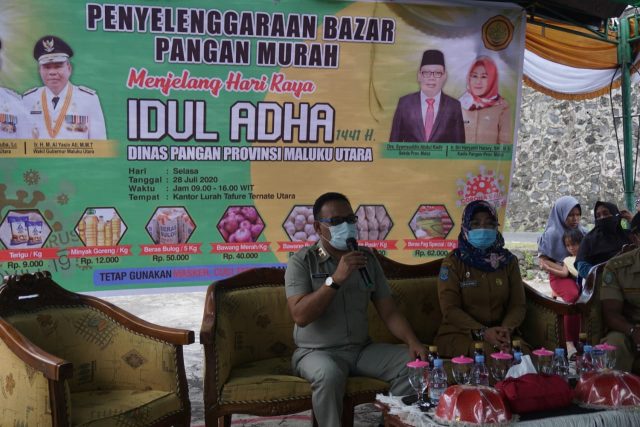 TERNATE – Menjelang Lebaran Idul Adha 1441 H. Dinas Pangan Provinsi Maluku Utara menggelar bazar pangan murah di Kelurahan Tafure, Kota Ternate, Selasa (28/07/20).