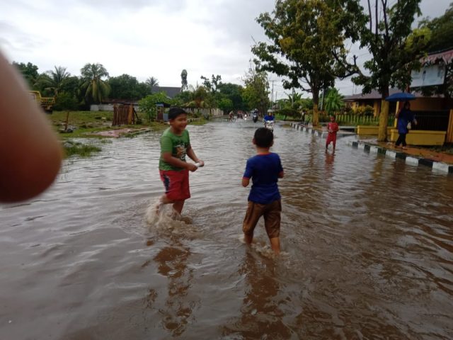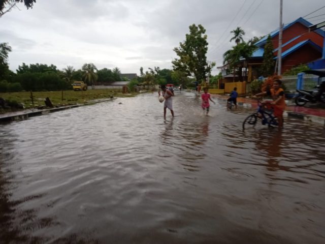 TIDORE KEPULAUAN – Luapan air genangi jalan Kemakmuran, Kompleks Tanah Abang RT/01 RW/02, Kecamatan Tidore sekira pukul 03.00 WIT. Kamis, (30/07).