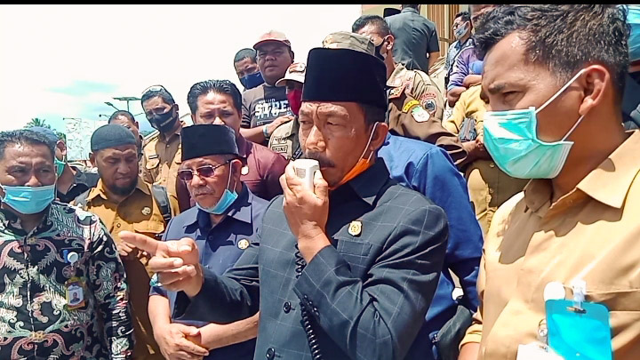 Ketua DPRD Provinsi Malut Kuntu Daud saat menemui masa aksi terkait dengan masalah sampah di pasar Galala