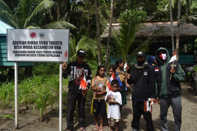 Dikatakannya, Sebelum kami melaksanakan upacara bersama, terlebih dahulu kami berkoordinasi dengan desa terdekat dengan lokasi orang suku yang hidup di tengah hutan. Akhirnya setelah kami melakukan koordinasi dengan Desa Woda, Kecamatan Oba, Tidore Kepulauan dan juga berkoordinasi dengan Babinsa setempat untuk kegiatan upacara bendera 17 Agustus HUT RI yang ke 75 tahun ini.
