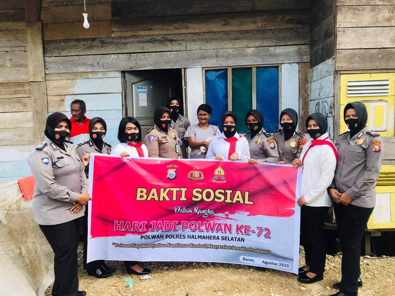 Halmahera Selatan – Dalam rangka menyambut HUT Polwan ke 72 yang jatuh pada tanggal 1 September 2020, segenap Polwan Polres Halmahera Selatan (Halsel) melaksanakan bakti sosial berbagi kasih di warga yang kurang mampu.