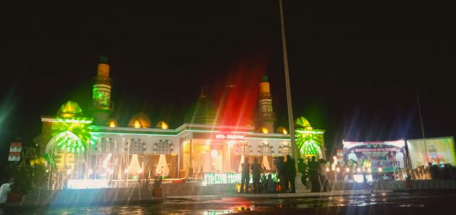 “Panggung mimbar Tilawatil Quran ini kami bangun dengan desain inspirasi suasana mesjid Nabawi yang mulia dan ditandai dengan Kuba hijau, mimbar Rasulullah serta tanah Raudhah. Keseluruhan desain ini mengandung historis dan filosofi dengan penuh makna, “jelasnya.