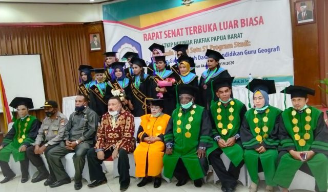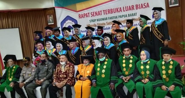 mewisudakan 44 orang sarjana dari dua program studi Pendidikan Guru Sekolah Dasar (PGSD) dan program studi pendidikan Geografi tahun angkatan ke – IV, berlangsung di Hotel Grand Papua, Sabtu, 26 September 2020.