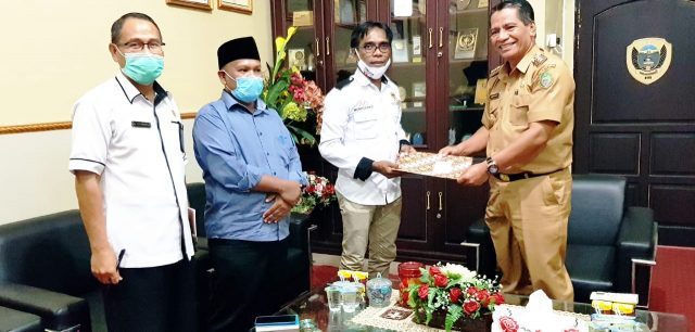 TIDORE KEPULAUAN- Setelah dikukuhkan oleh Gubernur Maluku Utara KH Abdul Gani Kasuba pada tanggal 26 September 2020 lalu, Penjabat Sementara (Pjs) Walikota Tidore Kepulauan Ansar Daaly memulai aktifitas perdana berkantor dengan menerima kunjungan dari Badan Pengawasan Pemilihan Umum (Bawaslu) Kota Tidore Kepulauan dan Komisioner Komisi Pemilihan Umum (KPU) Kota Tidore Kepulauan, Senin (28/9/2020) di ruang kerja Pjs. Walikota.