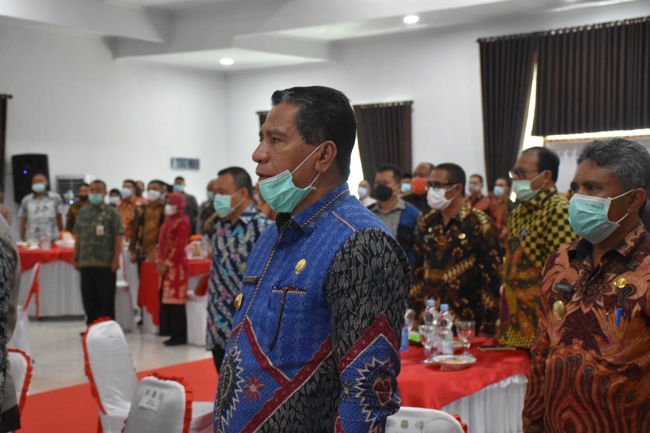 TIDORE KEPULAUAN- Pjs Walikota Tidore Kepulauan Ansar Daaly menghadiri Rapat Koordinasi Pemberantasan Korupsi ” Monev Inovasi Peningkatan Pajak Daerah dan Realisasi Penyelamatan Aset Se- Maluku Utara Tahun 2020″ yang gelar Aula Melati, Ex- Kediaman Gubernur Maluk Utara, Kalumpang Kota Ternate, Kamis (13/11).