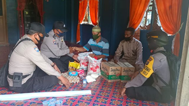 Kapolsek Kubu IPTU R. Sudaryono SIK MM bersama 5 personel lainnya menyerahkan bantuan berupa sembako kepada Khalifah Ramli  Jumat (20/11/20).