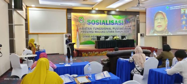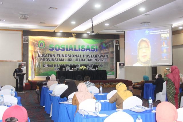 Bertempat di Lantai 6, Muara Hotel Ternate, dengan menghadirkan narasumber beberapa dari Jakarta melalui zoom meaning dan diikuti peserta sebanyak 50 orang peserta dalam kegiatan sosialisasi jabatan fungsional pustakawan Provinsi Maluku Utara yang dibuka secara resmi oleh kepala dinas Kearsipan dan Perpustakaan Provinsi Maluku Utara, Mulyadi Tutupoho.