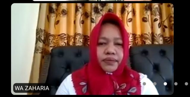 Sesi pertama dilaksanakan pada pukul 09:00 wit- 11:00 Wit dengan tema “Manfaat Program Pemilihan Ekonomi Nasional (PEN) Bagi UMKM” dengan menghadirkan Kepala Dinas Koperasi dan UKM Malut, Wa Zaharia secara virtual sebagai narasumber.