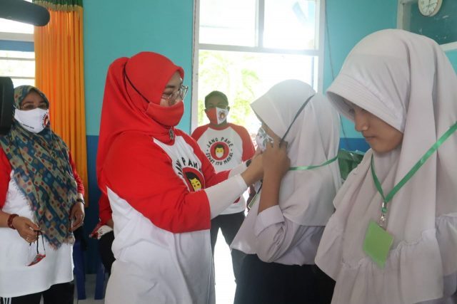 “Alhamdulillah masker jenis kain dan medis telah diberikan ke beberapa sekolah dan diterima langsung oleh masing-masing kepala sekolah,”ungkapnya.