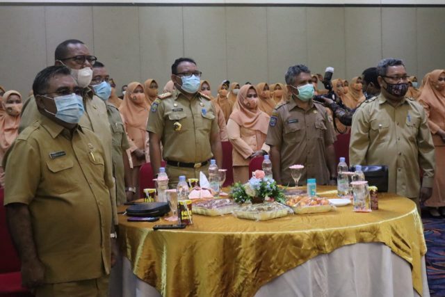 Nampak hadiri dalam kegiatan tersebut, para Kepala Organisasi Perangkat Daerah Provinsi Malut, Ketua dan anggota DWP Provinsi Malut, Ketua dan anggota DWP kabupaten/kota, serta tamu undangan lainnya. (**)
