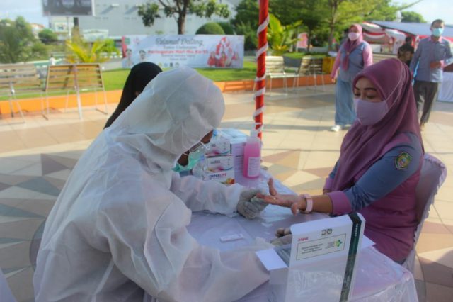 TERNATE – Dalam rangka memeriahkan peringati Hari Ibu ke-92 yang biasanya dilaksanakan pada 22 Desember 2020, Dinas Pemberdayaan Perempuan dan Perlindungan Anak (DP3A) Provinsi Malut bersama Tim Penggerak PKK Provinsi Malut dan Dinas Kesehatan Provinsi Malut menggelar rapid tes gratis untuk masyarakat, bertempat di Land Mark Kota Ternate, Sabtu (19/12/20).