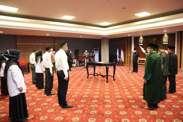 SOFIFI – Sebanyak 11 tenaga Pengawas Penyelenggaraan Urusan Pemerintah di Daerah (PPUD) di lingkungan Inspektorat Maluku Utara resmi dikukuhkan Gubernur Malut, Abdul Gani Kasuba pada, Kamis (14/1/21) bertempat di lantai 4 kantor gubernur di Gosale Puncak Sofifi.
