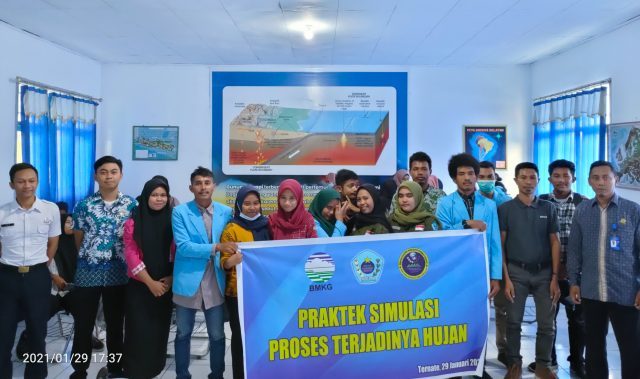 Kali ini, Jum’at 29 Januari 2021, Ketua Prodi Geografi STKIP Kie Raha, Alwi La Masinu, mengundang tiga orang narasumber dari kantor Badan Meteorologi, Klimatologi dan Geofisika untuk memberikan kuliah umum sekaligus mengajarkan bagaimana cara membuat simulasi hujan buatan, bertempat di lantai tiga, Gedung C Prodi Geografi STKIP Kie Raha Ternate.