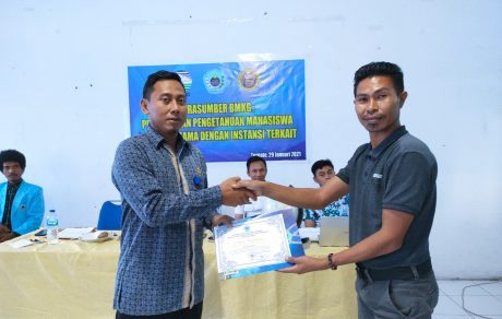 Selanjutnya, kegiatan ini diakhiri dengan simulasi peraktek hujan buatan dan sekaligus penyerahan piagam penghargaan oleh Ketua Prodi Geografi Alwi La Masinu kepada Kepala Seksi Data dan Informasi Stasiun Meteorologi Ternate, Setiawan Sri Rahajo kemudian juga diserahkan kepada Zaky Alin Nuary dan M. Adib Azka. Hal ini sebagai ucapan terima kasih Prodi Geografi atas partisipasinya sebagai narasumber sekaligus memberikan praktek kepada mahasiswa. (*)