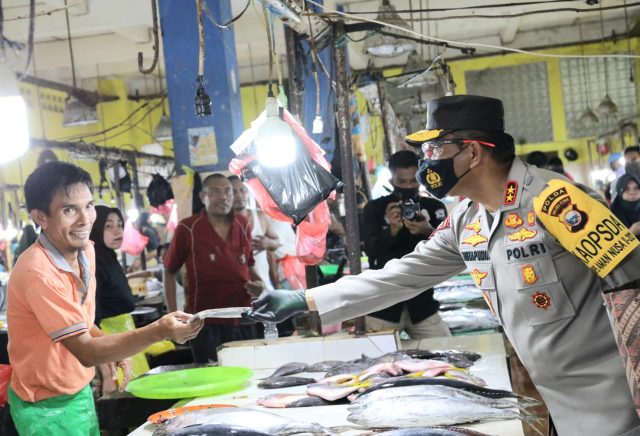 Saat dikonfirmasi awak media, di Pasar Bastiong Ternate Kapolda Maluku Utara menjelaskan terkait program dalam penanganan pandemi Covid-19 secara nasional dan Maluku Utara khususnya.