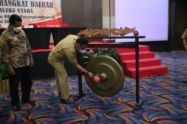 SOFIFI – Sekertaris Derah Provinsi Maluku Utara (Malut) Samsuddin A. Kadir mewakili Gubernur Malut secara resmi membuka Forum Lintas Perangkat Daerah Provinsi Maluku Utara tahun 2022 yang ditandai dengan pemukulan gong.