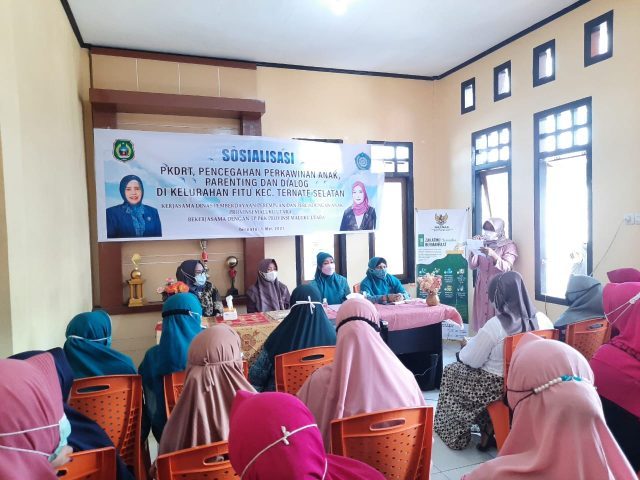 Kegiatan sosialisasi PKDRT dan Pencegahan Perkawinan Anak merupakan kerjasama Dinas PPPA Malut dengan Tim Penggerak PKK, yang dilaksanakan di Kelurahan Fitu pada 2 Mei 2021 dan Kelurahan Kastela 3 Mei 2021 kemarin.