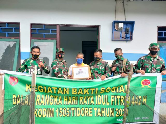 TIDORE – Dalam Rangka HUT Kodam XVI/Pattimura Yang ke 22 Tahun, Kodim 1505/Tidore Melaksanakan aksi bagi-bagi sembako untuk masyarakat kurang mampu yang terdampak Covid-19, bertepatan menjelang H-2 lebaran atau hari raya Idul fitri 1442 H.