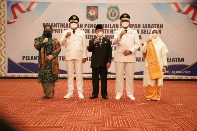 “Masyarakat Halmahera Selatan telah memilih pemimpinnya, sehingga pada hari ini, telah diterbitkan SK Mendagri dengan momo Surat : 131.82/1055 Tahun 2021 tentang pengesahan pengangkatan kepala daerah dan wakil kepala daerah hasil pemilihan kepala daerah serentak tahun 2020 di Kabupaten/Kota pada Provinsi Maluku Utara. Dan selaku Gubernur Wakil Pemerintah Pusat, saya diperintahkan untuk melantik dan mengambil sumpah ini.