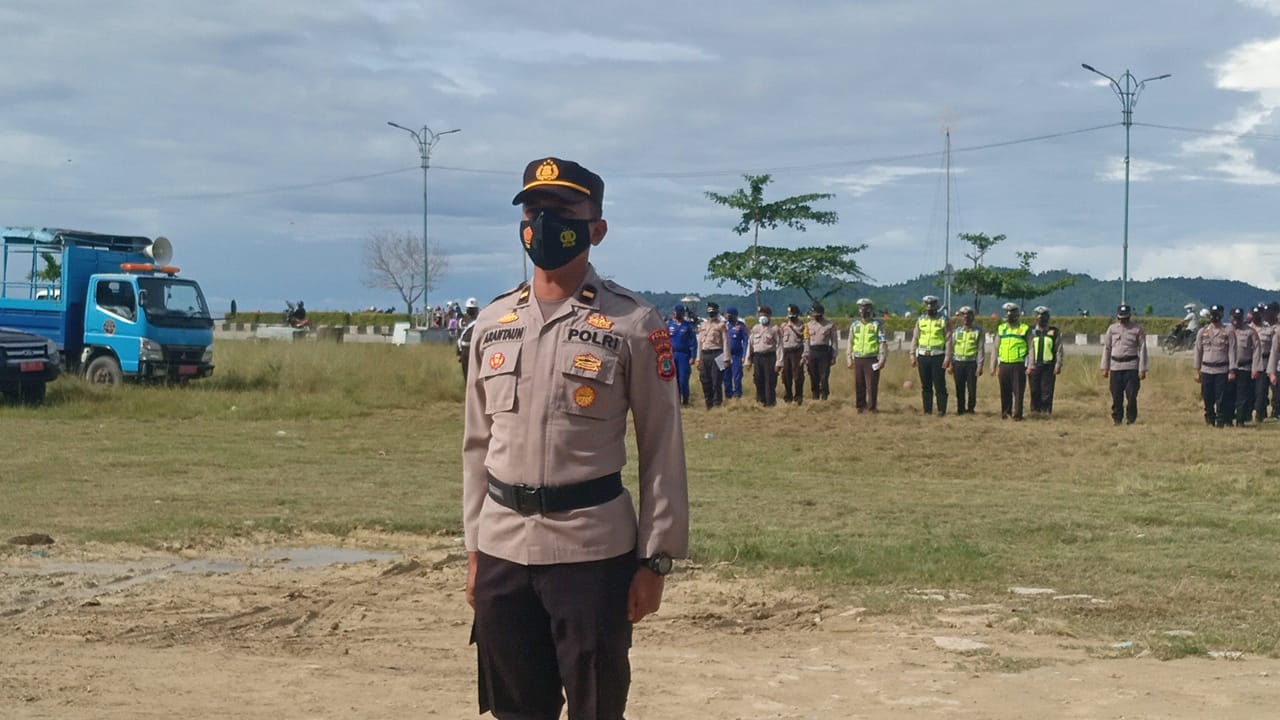 Fakfak-Dalam rangka Peningkatan Pemberlakuan Pembatasan Kegiatan Masyarakat (PPKM) skala mikro guna menekan laju penyebaran Covid 19 di Kab. Fakfak yang terus meningkat, Polres Fakfak bersama TNI dan Instansi terkait menggelar Apel Gabungan, bertempat di Lapangan Jl. Dr. Salasa Namudat, pada Sabtu (10/7/2021)