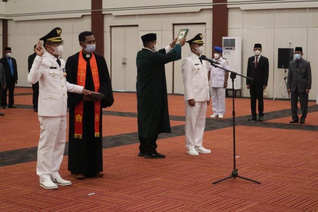 “Hari ini, selaku Gubernur, saya diperintahkan oleh Menteri Dalam Negeri untuk melantik saudara berdua, “kata Gubernur.