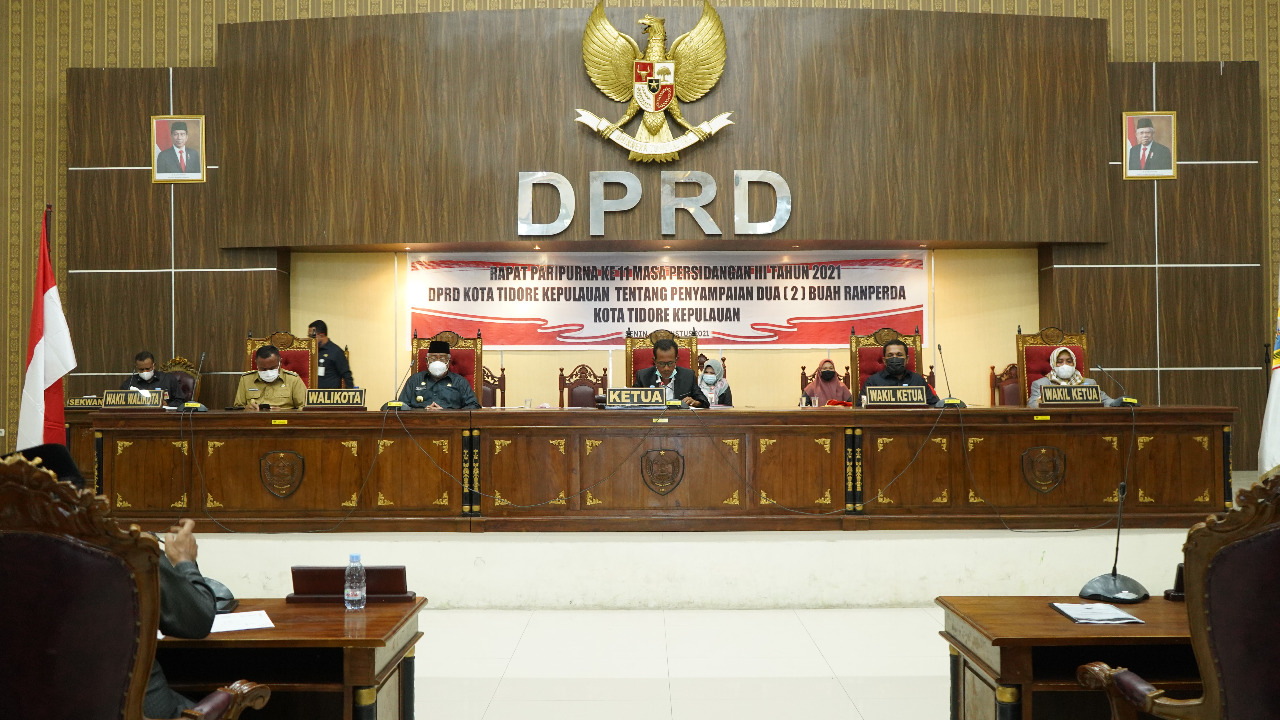 TIDORE- Dewan Perwakilan Rakyat Daerah (DPRD) Kota Tidore Kepulauan menggelar Rapat Paripurna ke 11 masa persidangan III Tahun 2021 tentang Penyampaian Rancangan Peraturan Daerah (Ranperda) Rencana Pembangunan Jangka Menengah Daerah (RPJMD) Tahun 2021-2026. dan Ranperda Rencana Tata Ruang Wilayah (RTRW) bertempat di Gedung DPRD Kota Tidore, Senin (16/8/2021).