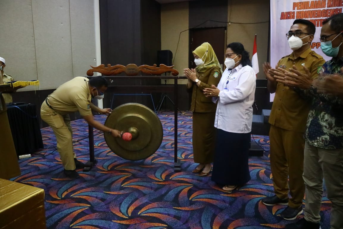 menghadiri sekaligus membuka kegiatan Penilaian Kinerja dan Pelatihan Pelaksanaan Aksi Konvergensi Percepatan Penurunan Stunting di Provinsi Malut yang di