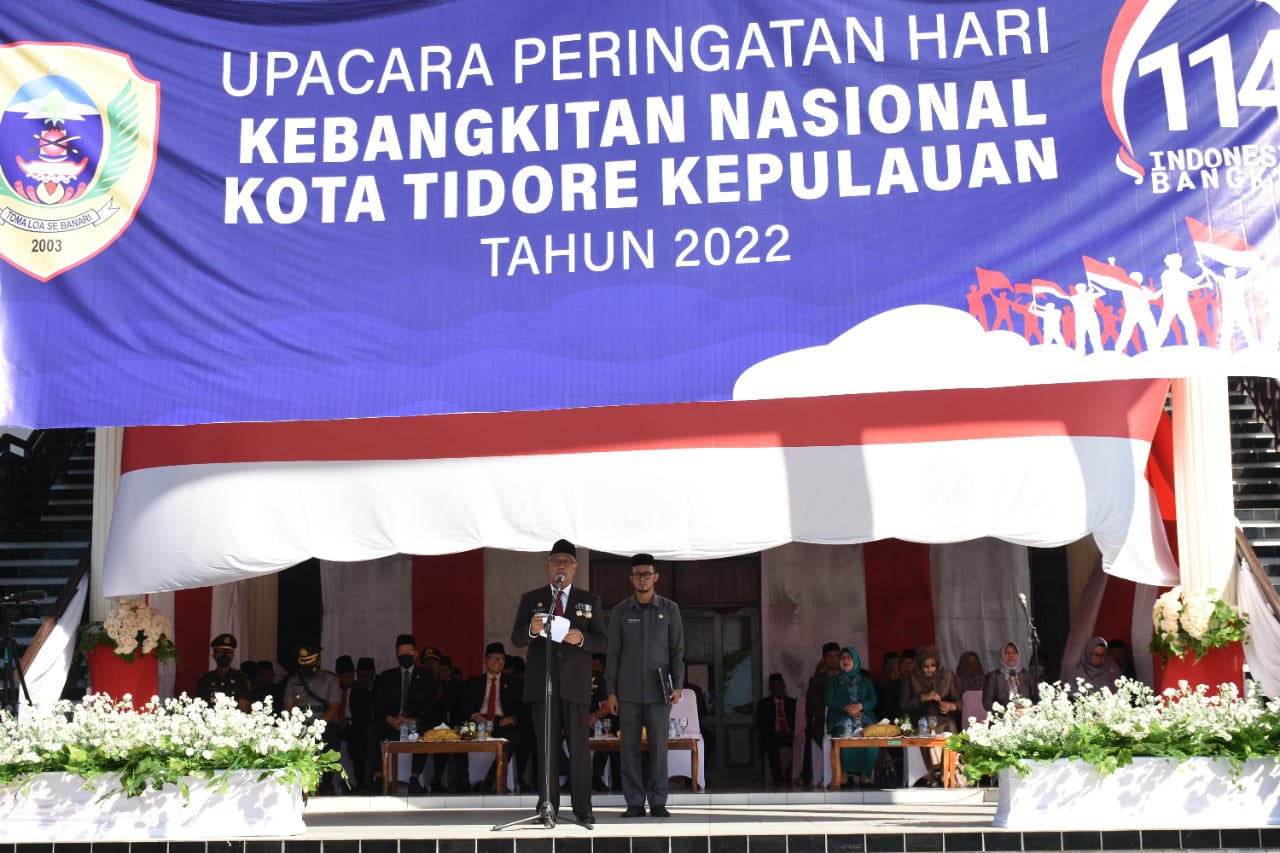 TIDORE – DIsela-sela upacara peringatan Hari Kebangkitan Nasional ke 114 di halaman kantor walikota, Jumat (20/5/22). Pemerintah Kota Tidore mendapatkan penghargaan dari BKN Regional XI Manado atas terpilihnya sebagai peringkat pertama pada Kategori V Komitmen Pengawasan dan Pengendalian.