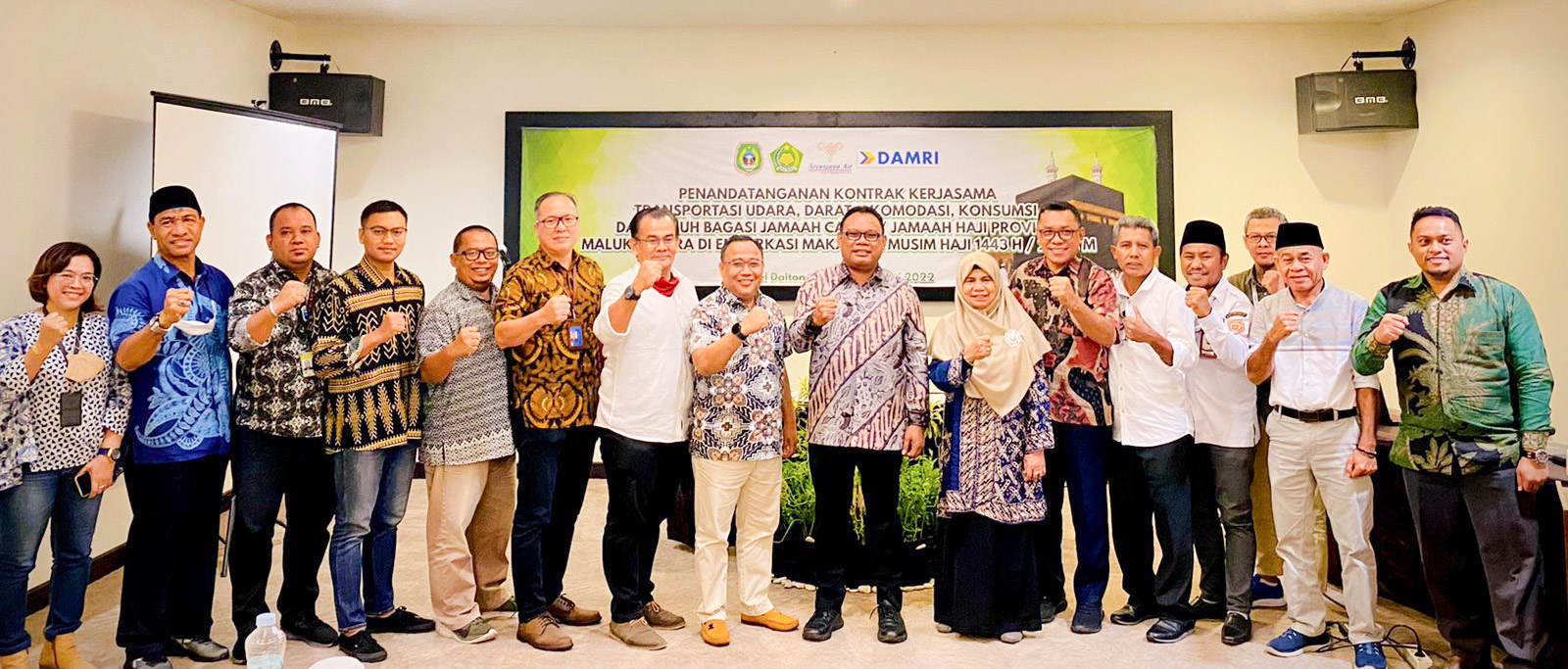 Perjanjian kontrak dengan nomor: 120.22/1934/MU/2022 dan nomor 080/PER-SJ/DIR/VI/2022 Tentang perjanjian Sewa Layanan Jamaah Calon Haji/ Jamaah Haji Tahun 2022 kemudian dituangkan melalui penandatanganan kontrak kerjasama transportasi udara, darat, akomodasi, konsumsi dan buruh bagasi jamaah calon haji provinsi Malut Embarkasi Makasar musim haji 1443 H tahun 2022 di hotel Dalton Makassar.
