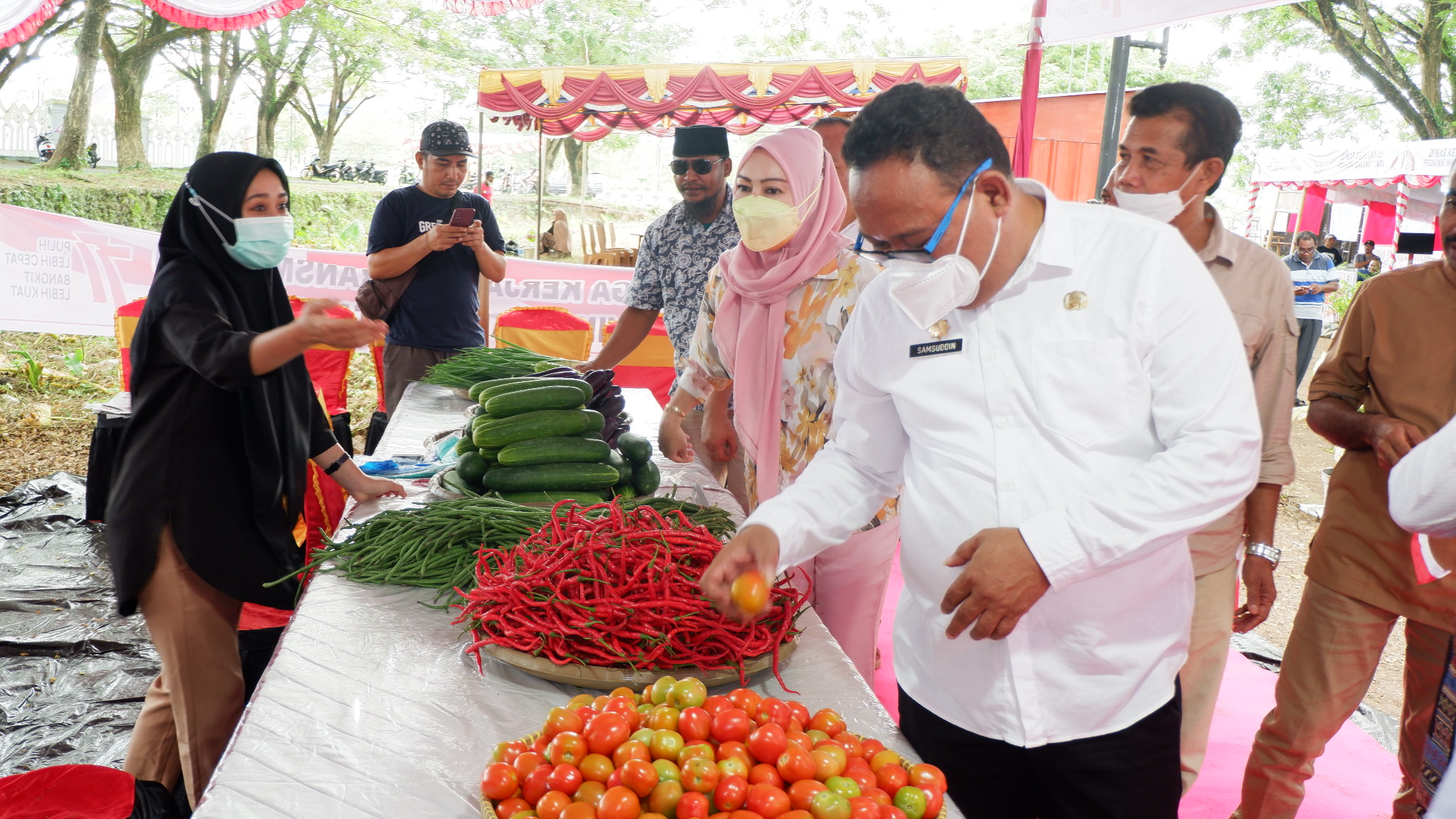 Usai melakukan peresmian, Sekertaris Daerah langsung disambut dengan tarian Soya-soya dan dilanjutkan degan melakukan peninjauan ke beberapa stan penjualan produk unggulan pelaku UMKM yang telah disediakan oleh Dinas Koperasi dan UMKM, Dinas Kehutanan, Dinas Nakertrans, Dinas Kelautan dan Perikanan, Dinas Pemberdayaan Perempuan dan Perlindungan Anak, Dinas Pertanian dan beberapa dinas lainnya.