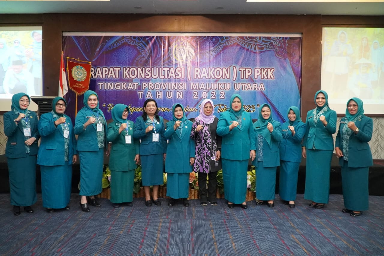 TERNATE – Dalam Rangka menjalin silaturahmi dan komunikasi serta mengevaluasi pelaksanaan sejumlah program kerja TP-PKK Provinsi Maluku Utara maupun Kabupaten/Kota, dengan ini dilaksanakan Rapat Konsultasi (RAKON) TP-PKK tingkat Provinsi Maluku Utara yang dibuka oleh Gubernur Maluku Utara yang diwakili Asisten II Bidang Perekonomian dan Administrasi Pembangunan Setda Provinsi Maluku Utara Ir. Sri Haryanti Hatari. bertempat di Ballroom Muara Hotel Ternate. Minggu (04/12/2022) malam.