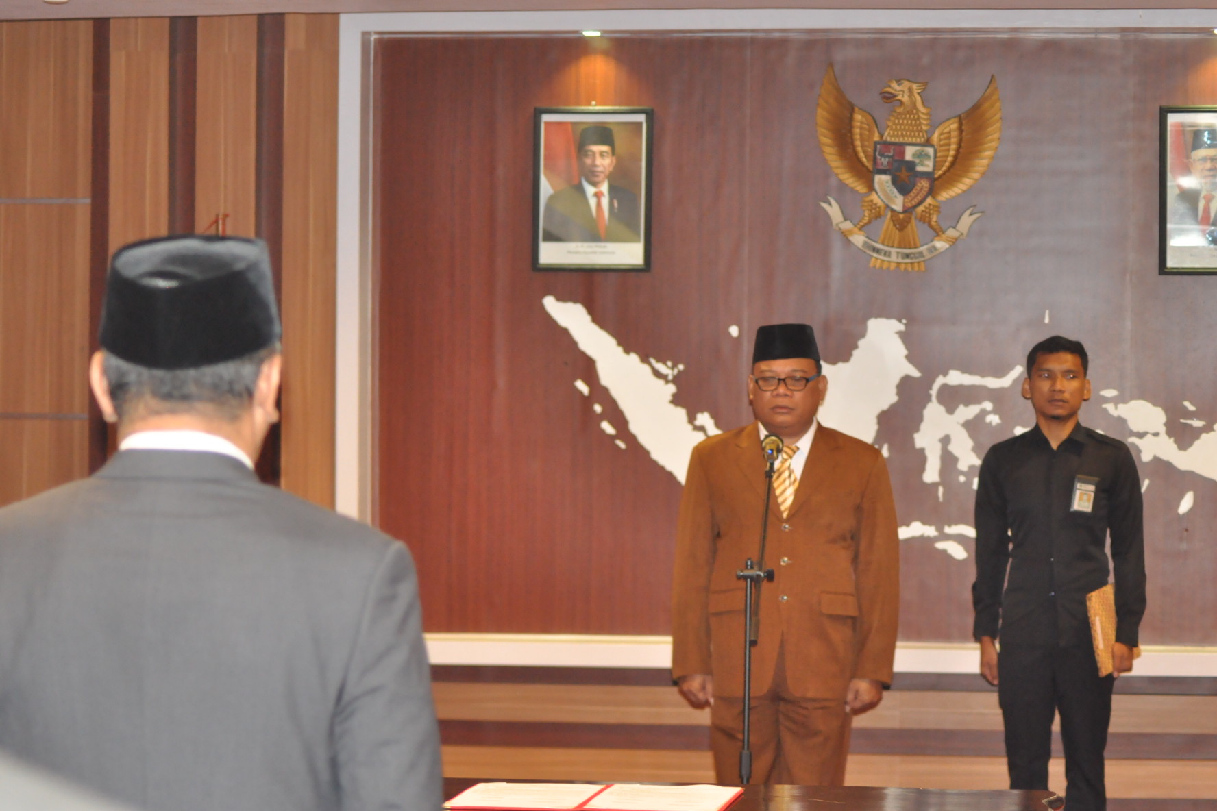 “Pada hari ini, Saya Sekda Maluku Utara melantik dengan resmi saudara dalam jabatan pimpinan tinggi pratama,” ujar Samsuddin A. Kadir saat membacakan naskah pelantikan.