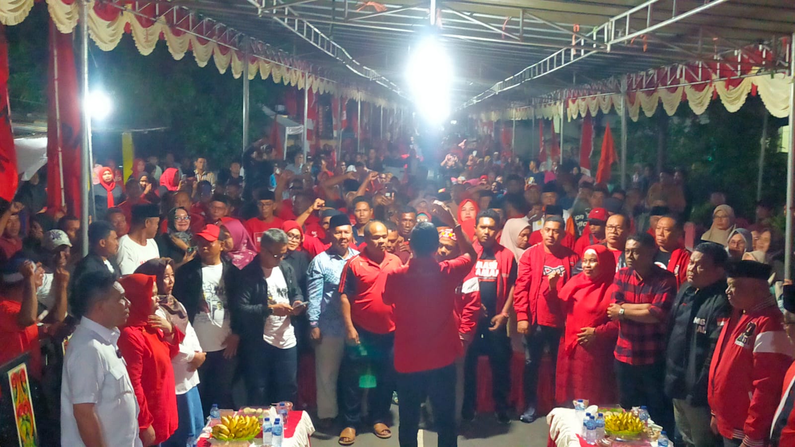 TIDORE –  Lautan manusia pendukung dan simpatisan Bakal Calon Walikota dan Wakil Walikota Tidore Kepuluan Muhammad Sinen – Ahmad Laiman alias MASIAMAN memadati acara reuni kawan MASIAMAN di Kelurahan Rum, Kecamatan Tidore Utara, Senin malam, 10 Juni 2024.Ketua Panitia Kawan MASI AMAN, Yahyudin Miraj menyebut, kehadiran pendukung dan simpatisan ini adalah bukti nyata kecintaan warga Masyarakat Kota Tidore, kepada kedua pasangan Muhammad Sinen dan Ahmad Laiman (MASIAMAN).Untuk itu, kata dia, atas nama Warga Masyarakat Tidore mengucapkan terimakasih kepada Ketua DPP PDIP, Megawati Soekarno Putri yang telah merekomendasikan dua sosok pemimpin yang sangat dicintai Masyarakat Tidore, untuk bertarung di Pilkada Tidore 2024.