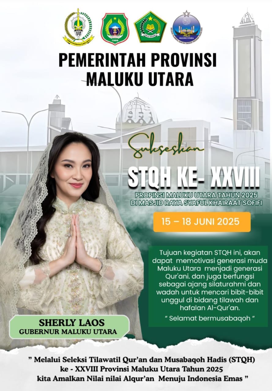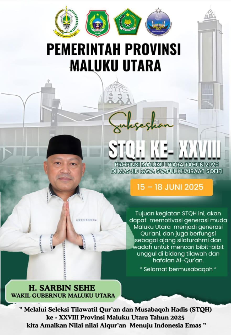 STQH Tingkat Provinsi Maluku Utara akan digelar pada 15-18 Juni 2025. Ajang ini merupakan puncak dari seluruh rangkaian yang telah dilaksanakan mulai dari tingkat desa/kelurahan, kecamatan, hingga kabupaten/kota. Seleksi ini untuk menentukan qari’-qari’ah, hafidz-hafidzah, serta mufassir-mufassirah terbaik yang akan mewakili Maluku Utara pada STQ Tingkat Nasional.