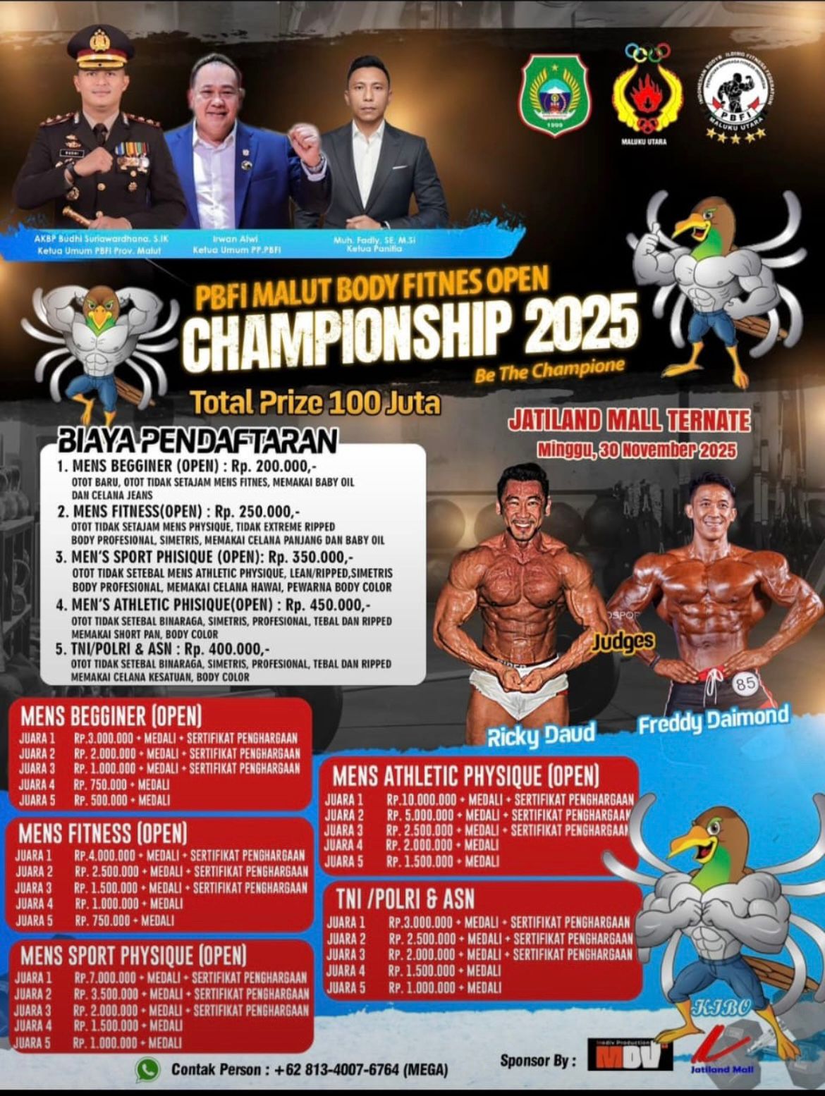 TERNATE – Persatuan Binaraga Fitnes Indonesia (PBFI) Maluku Utara siap menggelar event akbar bertajuk PBFI Malut Body Fitness Open Championships 2025 pada 30 November 2025 mendatang. Ajang bergengsi ini akan berlangsung di Jatiland Mall Ternate, menghadirkan kompetisi seru dengan berbagai kategori yang dipertandingkan.