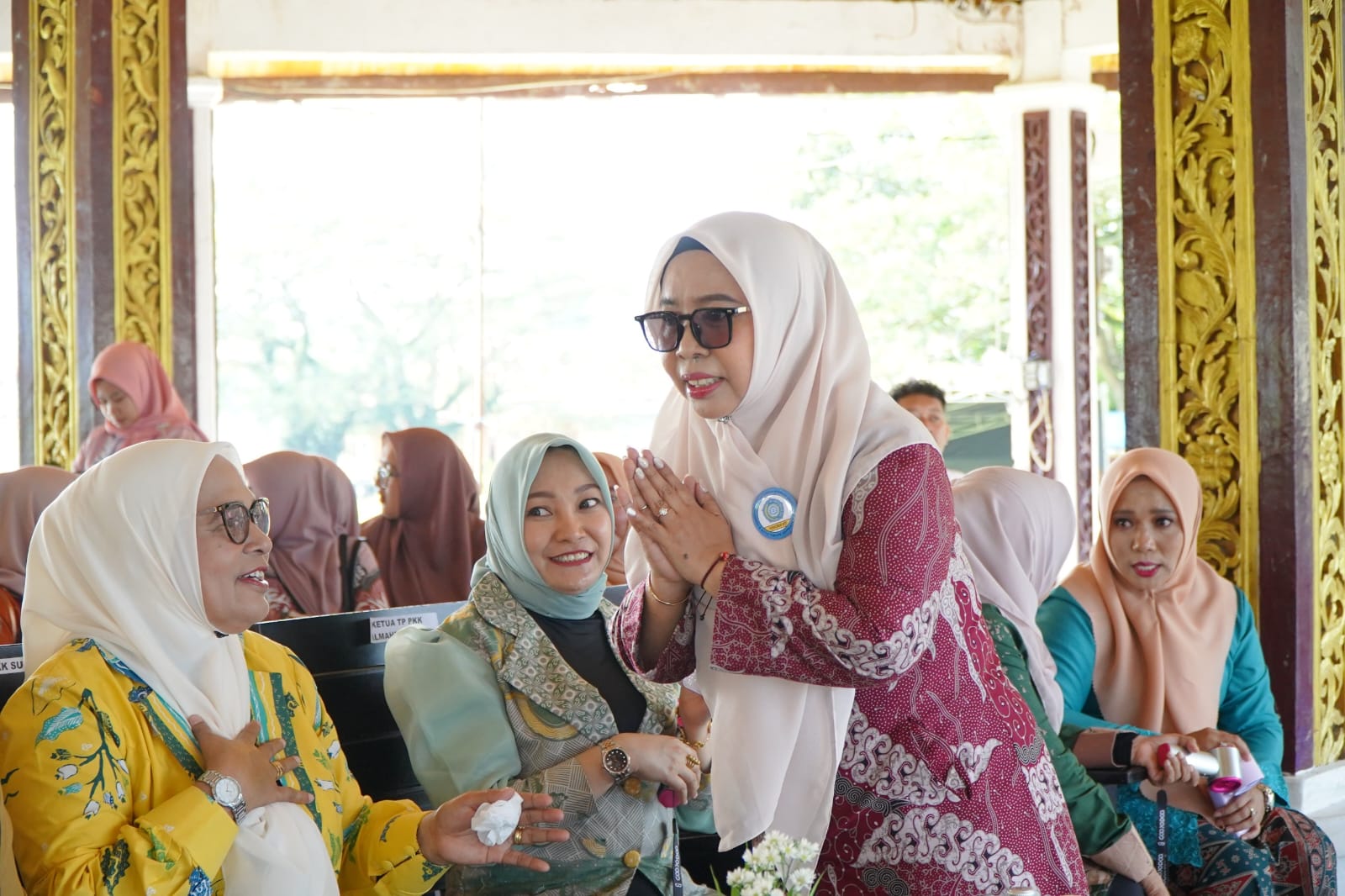 Kompak, dalam kesempatan tersebut, Istri orang nomor dua di Kota Tidore Kepulauan ini mengenakan busana batik berwarna merah dipadukan dengan jilbab berwarna cream. Busana senada juga digunakan oleh Ketua II TP PKK Tidore Ny Hj. Nuraen Ismail Dukomalamo dan Ketua III Ny. Hj. Sukarni Ade Kama beserta rombongan.