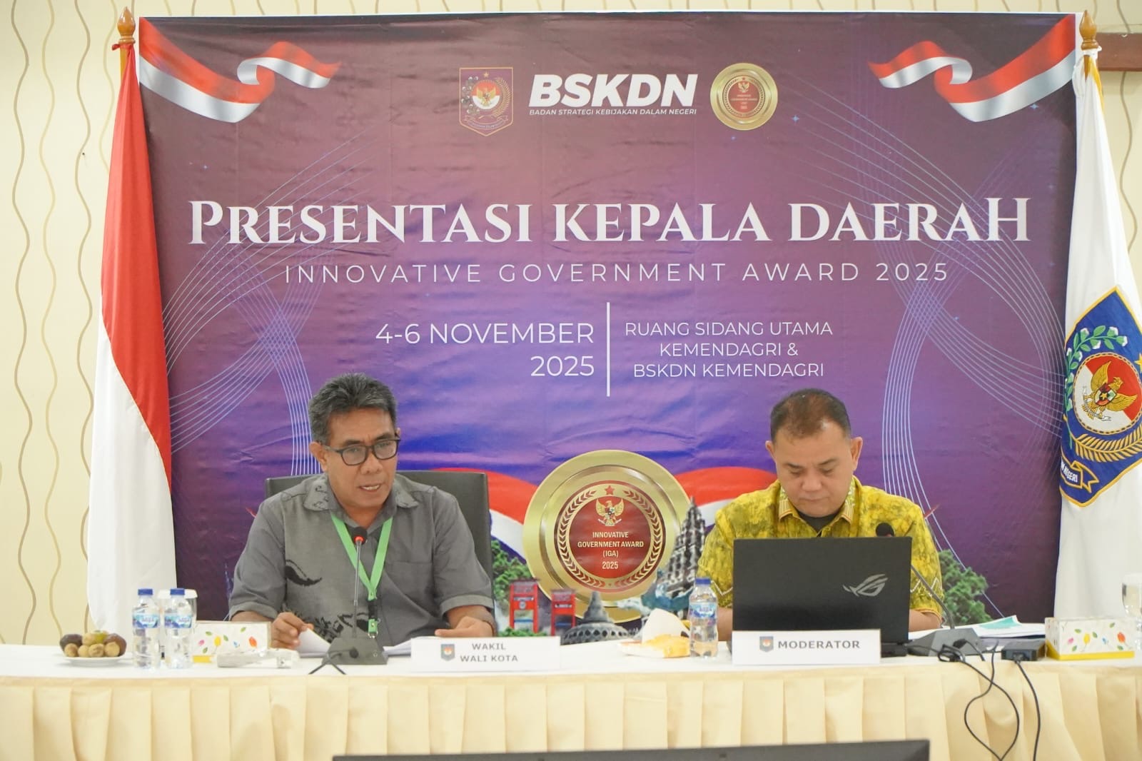 Tidore- Wakil Wali Kota Tidore Kepulauan Ahmad Laiman sukses presentasikan Dua Inovasi Unggulan Kota Tidore Kepulauan dalam rangka penilaian dan pemberian penghargaan Innovative Government Award 2025 Kategori Kota yang berlangsung di Ruang Sidang Utama, Kantor Badan Strategi Kebijakan Dalam Negeri (BSKDN) Kementerian Dalam Negeri, Jakarta, Kamis (6/11/2025).