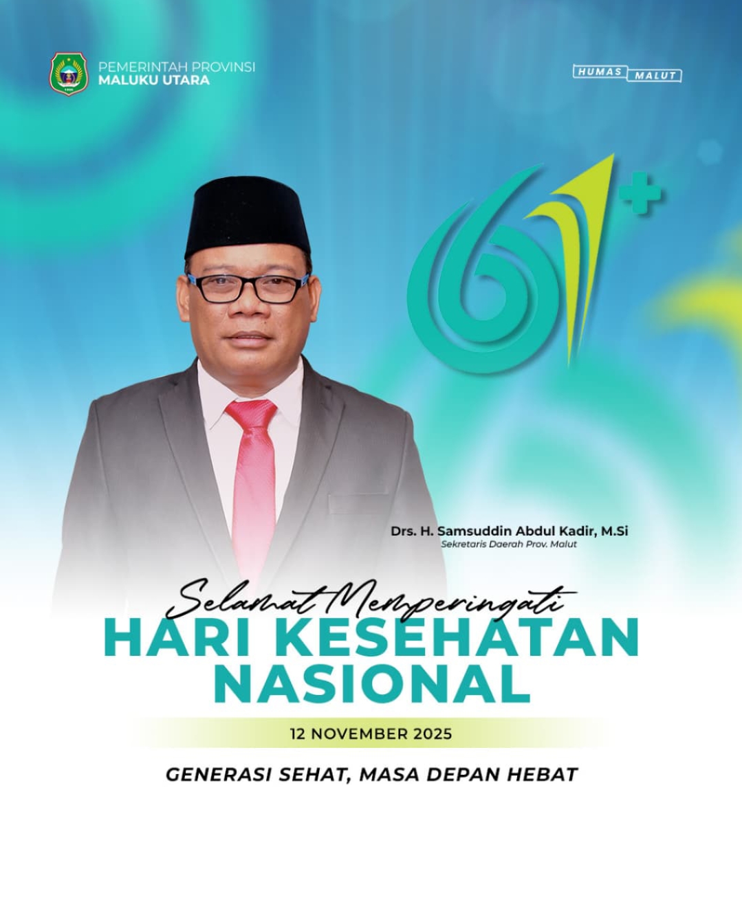 “Atas nama Pemerintah Kota Tidore Kepulauan menyampaikan selamat Hari Kesehatan Nasional ke 61 Tahun 2025, semoga dengan diperingatinya hari kesehatan ini dapat memberikan spirit dan semangat bagi para nakes di Kota Tidore dalam memberikan pelayanan kepada masyarakat, ” kata Muhammad Sinen.