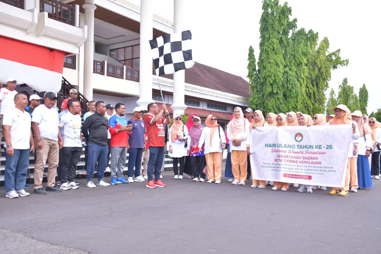 Jalan sehat yang mengambil titik start di halaman Kantor Wali Kota Tidore dan finish di Open Space ini dilepas secara resmi oleh Sekretaris Daerah Kota Tidore Kepulauan, H. Ismail Dukomalamo, didampingi para pimpinan OPD di lingkungan Pemerintah Kota Tidore Kepulauan. Turut hadir Ketua DWP Kota Tidore Kepulauan, Hj. Nuraen Ismail Dukomalamo, Ketua IV Tim Penggerak PKK Kota Tidore Kepulauan, Verawati Abdurrahman Arsyad, serta seluruh pengurus dan anggota DWP se-Kota Tidore Kepulauan.