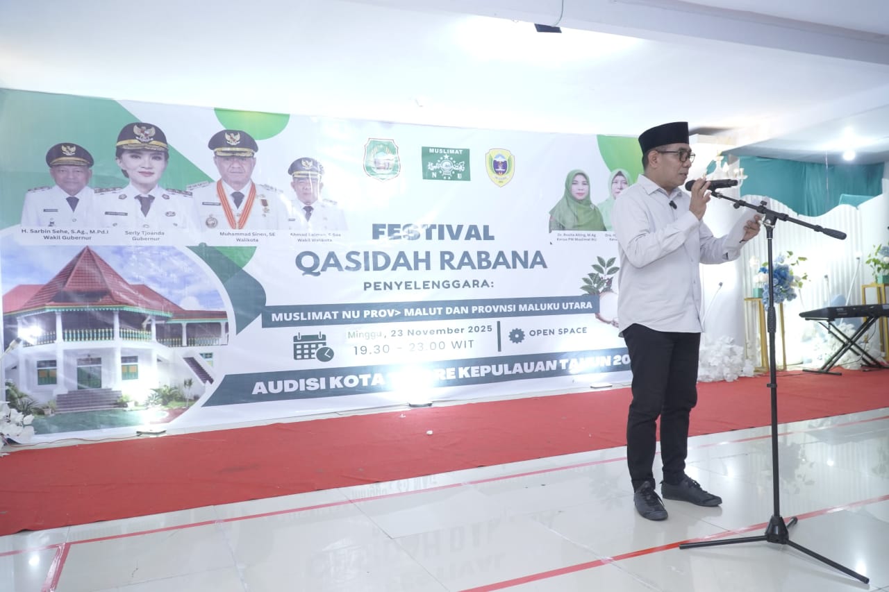 TIDORE – Pemerintah Kota Tidore Kepulauan mengapresiasi terselenggaranya kegiatan lomba Qasidah Rebana Audisi Kota Tidore Kepulauan Tahun 2025 yang diselenggarakan oleh Dinas Pariwisata Provinsi Maluku Utara bersama Muslimat NU di Pendopo Budaya Open Space, Kelurahan Tomagoba, Minggu (23/11/2025) Malam.