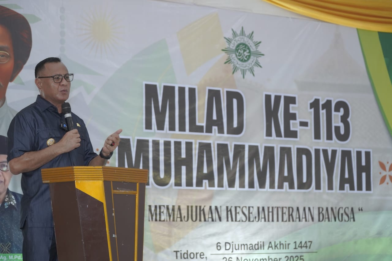 TIDORE – Wali Kota Tidore Kepulauan, Muhammad Sinen, menegaskan bahwa Muhammadiyah merupakan mitra strategis Pemerintah Kota dalam mendorong pembangunan daerah. Hal itu disampaikan saat menghadiri Milad ke-113 Muhammadiyah Kota Tidore Kepulauan di Aula SMA Negeri 1 Tidore, Rabu (26/11/2025).